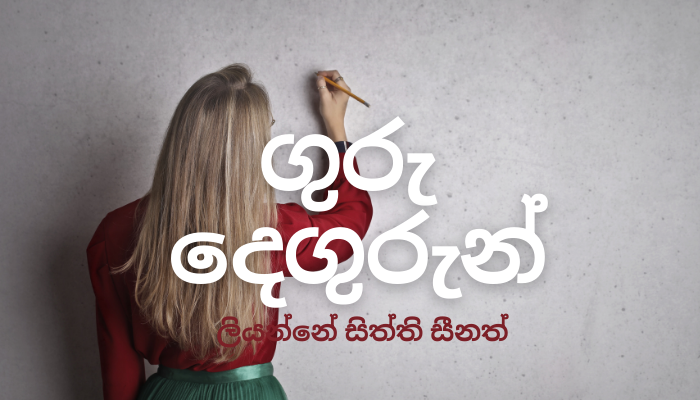 ගුරු දෙගුරුන් අගයමි මමඅකුරු කියා දුන්නාආසාවෙන් කියනා දෙය අපිඅහගෙන උන්නාලොකුවට දඟ වැඩක් කලොත්කෝටු පාර දුන්නාබුද්ධිය පෝෂණය කරලඅනාගතය මැන්නා හිමිදිරියේ අවදි වෙලාපාසල වෙත එන්නේදුශ්කර ගම්මානෙ ඇවිදලානෙගමන යන්නේ“ටීචර්” යනු ඇයත් මවකිදරුදුක හදුනන්නේ“තාත්තා” ගුරු පියෙක් වෙලාණැනස පාදවන්නේ හැම දරුවා ගැන විස්තරගුරු දෙගුරුන් දනිතීමුළු පාසැලෙ විනය ඉතාමත්ඉහළින් රකිතීඉගෙන ගත්ත හැටි සතුටින්මගේ මනසෙ මැවෙතීහෝඩි පොතේ අකුරු වලින්කවියක් මා ලියතී සියලු බුද්ධිමතුන් තැනටආවෙ දෙගුරු හින්දාඉන්නේ අද හරි ඉහලින්හොඳටම මන බන්දාදෙගුරුන්ගේ කැප කිරීමහරි ඉහළින් රන්දාදරුවන් අපෙ අනාගතයඋගන්වන්න කැන්දා ඉගෙන ගන්න ඔන්ලයිනුත්එපා නැති කරන්නඅපේ රටේ දරු පරපුරයහමඟටම ගන්නප්රශ්න …