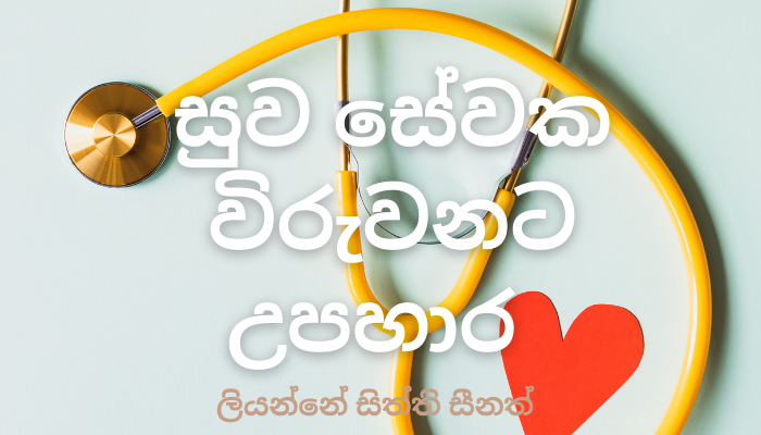 රෝගිය ගිලන් වී යයිඉස්පිරිතාලේඇඳවල් පිරී ඇත සැම තැනඅද රාලේසමහරු යන්නටම යනවාහැර ආලේමිනිසත් කම උසස් සමගියමේ කාලේ නුඹලත් දෙමව්පිය පොඩිදරුවන් ඉන්නාඅසරණ ලෙඩ්ඩු නුඹලගෙමව්පිය වැන්නාකඩිසර කමින් ඒ මේ අතපිය මැන්නාඅන්තිම මොහොතෙ මැෂිමටඋන් සවිවෙන්නා සේවා මුරය ගැන නැහැදැන් තකන්නේලෙඩ්ඩුන් ගේම ගින්දරමයි නිවන්නේහැකි සැම විටම ජීවිතයක්රකින්නේවැඩකරලාම පැය,දින,සතිගෙවෙන්නේ ඇඟලා කට්ටලෙන් පෙනෙනවහරි වෙහෙසනිදි මරලාම හෙම්බත් වීඇත මනසනොලබන්නේය නුඹලගෙදරුවන් පහසසෙනෙහස පිදිය යුතු උස්තරමට අහස යදිනා ලෙඩුන් ජීවිතඉල්ලා දුකකීනුඹලත් හඬනවා ඇතිහදවත මලකීඅස්ථිරයි මෙ ජීවිත මිලකල නොහැකීසැමදා සිටිය යුතුමයිනුඹලා සුරැකී ජීවිත රකින විරුවන්නුඹලාම වෙතී!කරනා සේවෙ සoසාරේපිනම ඇතී!බත්පත කන්න සමහර …
